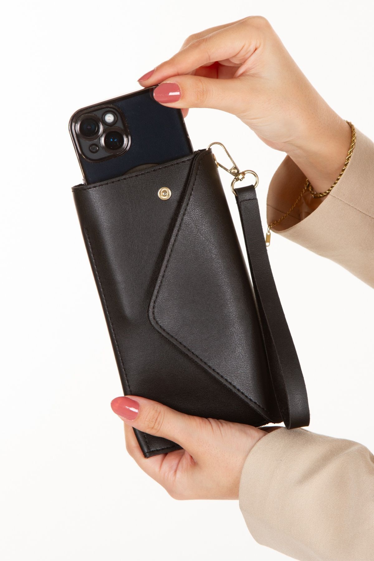 Kadın Deri Telefon Nakit Bozuk Bölmeli Kilitli Bilek Askılı Cüzdan